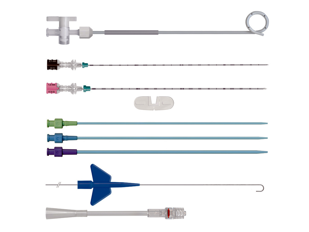 Contemporary Seldinger set - needles, sheaths, guide wire, pigtail catheter & connector