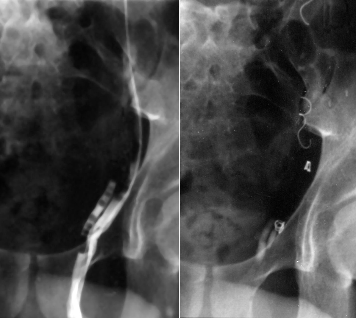 Before (L) & after (R) coil & sponge occlusion of a varicocele